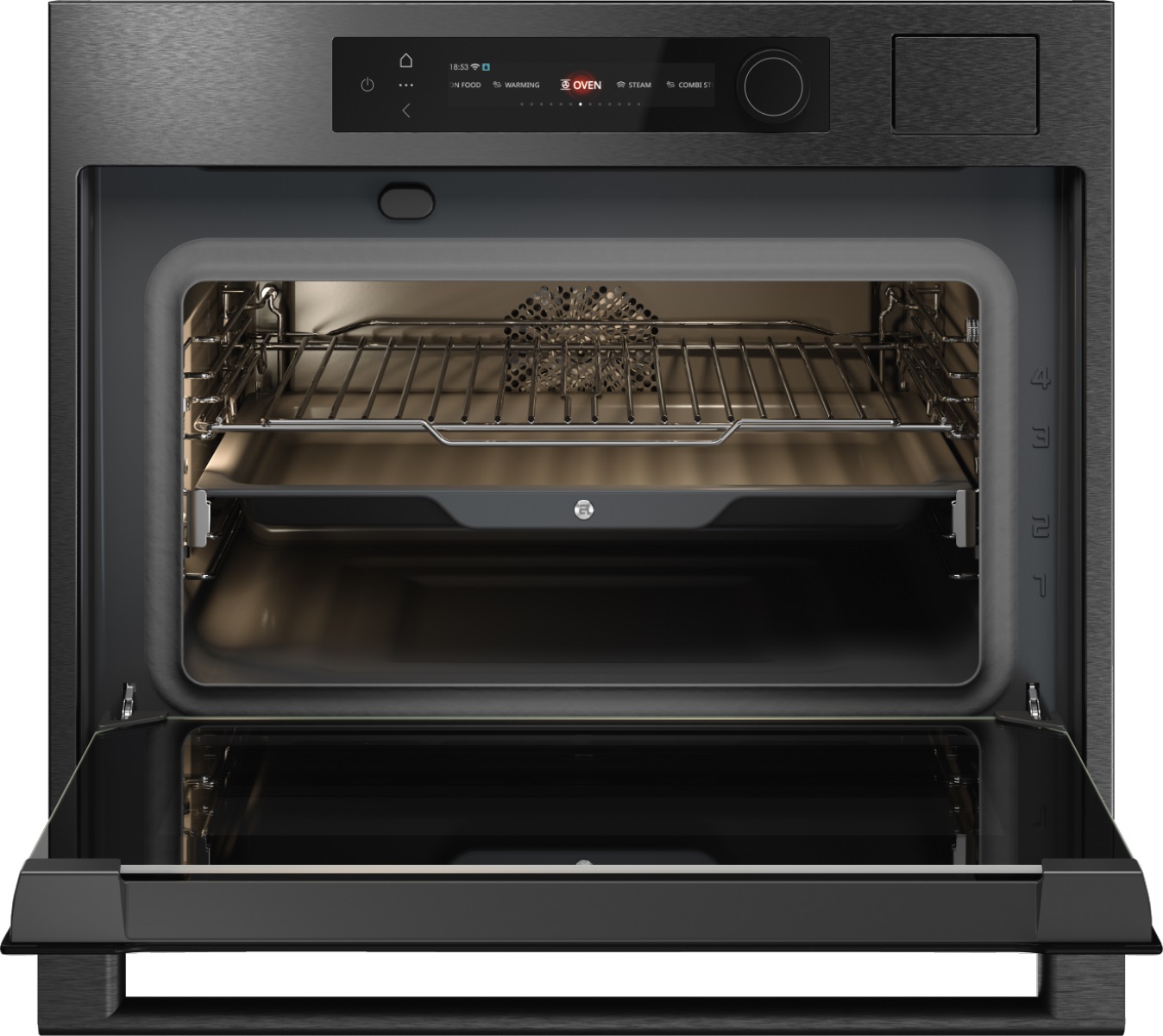 С помощью этой духовки вы можете комбинировать функции паровой печи с функциями традиционной духовки, но, конечно, вы можете использовать духовку и пар в качестве двух отдельных методов приготовления. Простой в использовании цветной дисплей с комбинированным сенсорным управлением и тактильным поворотным переключателем обеспечивает идеальный обзор процесса приготовления и быстрый доступ ко всем функциям. Духовка оснащена Wi-Fi-соединением с приложением ConnectLife, которое предлагает функции, облегчающие приготовление пищи.