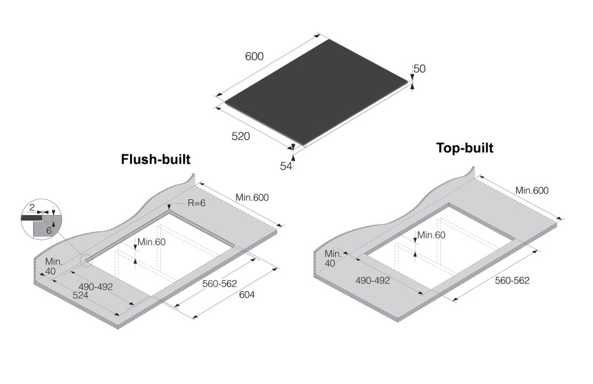 Два варианта монтажа: внакладку или вровень со столешницей.