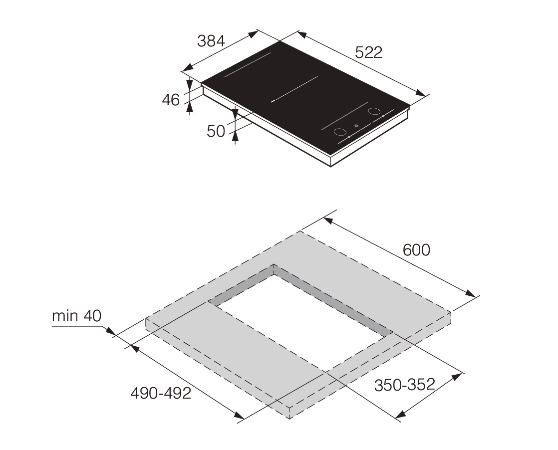 Размер ниши (Ш/Г/В): 350/490/43 мм