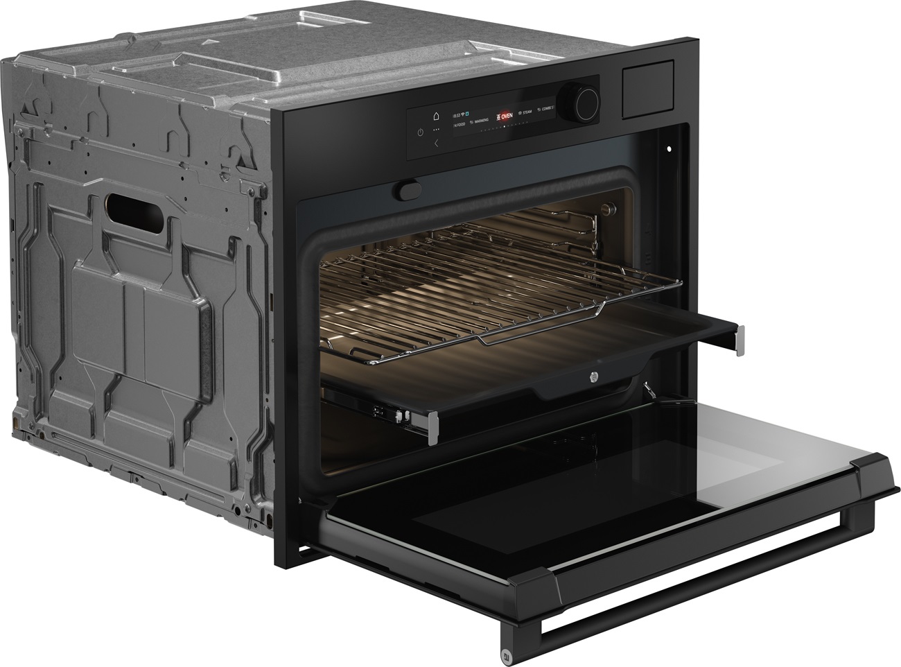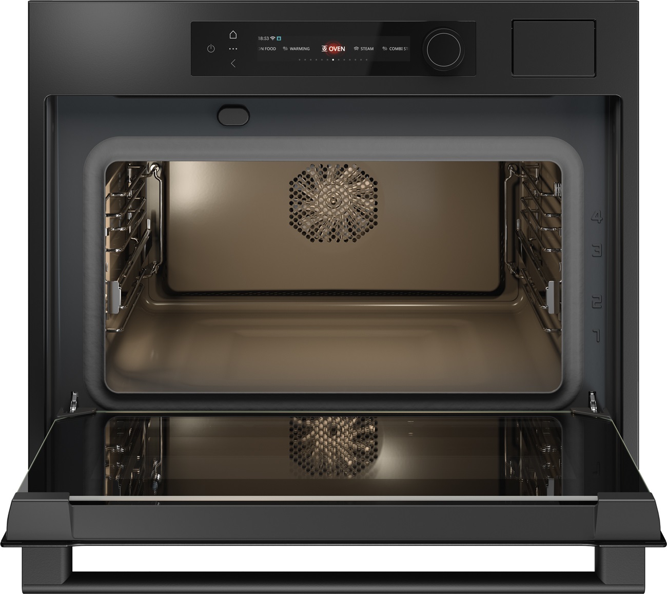 С помощью этой духовки вы можете комбинировать функции паровой печи с функциями традиционной духовки, но, конечно, вы можете использовать духовку и пар в качестве двух отдельных методов приготовления. Простой в использовании цветной дисплей с комбинированным сенсорным управлением и тактильным поворотным переключателем обеспечивает идеальный обзор процесса приготовления и быстрый доступ ко всем функциям. Духовка оснащена Wi-Fi-соединением с приложением ConnectLife, которое предлагает функции, облегчающие приготовление пищи.