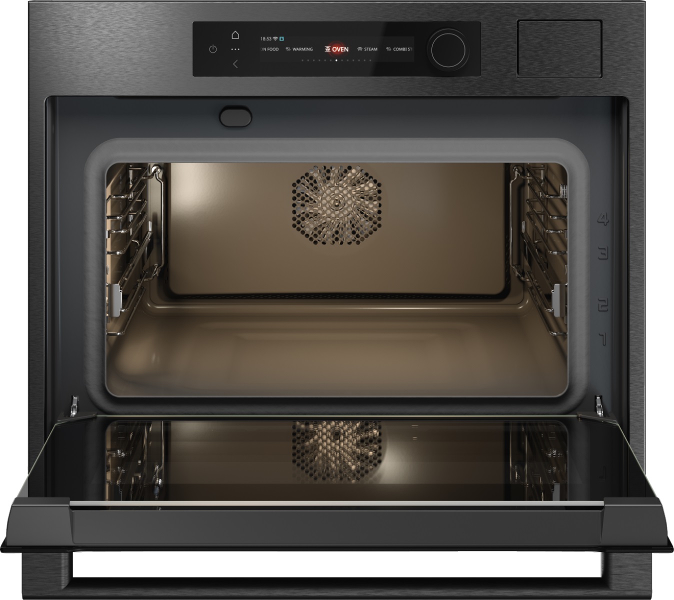 С помощью этой духовки вы можете комбинировать функции паровой печи с функциями традиционной духовки, но, конечно, вы можете использовать духовку и пар в качестве двух отдельных методов приготовления. Простой в использовании цветной дисплей с комбинированным сенсорным управлением и тактильным поворотным переключателем обеспечивает идеальный обзор процесса приготовления и быстрый доступ ко всем функциям. Духовка оснащена Wi-Fi-соединением с приложением ConnectLife, которое предлагает функции, облегчающие приготовление пищи.