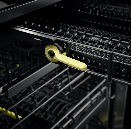 • Нижняя корзина Premium: Складные держатели для тарелок в заднем ряду, съемная корзина для столовых приборов.