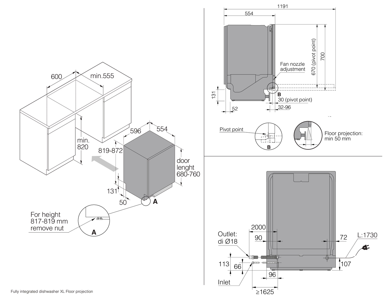 Полностью встраиваемая, XL 82 см.