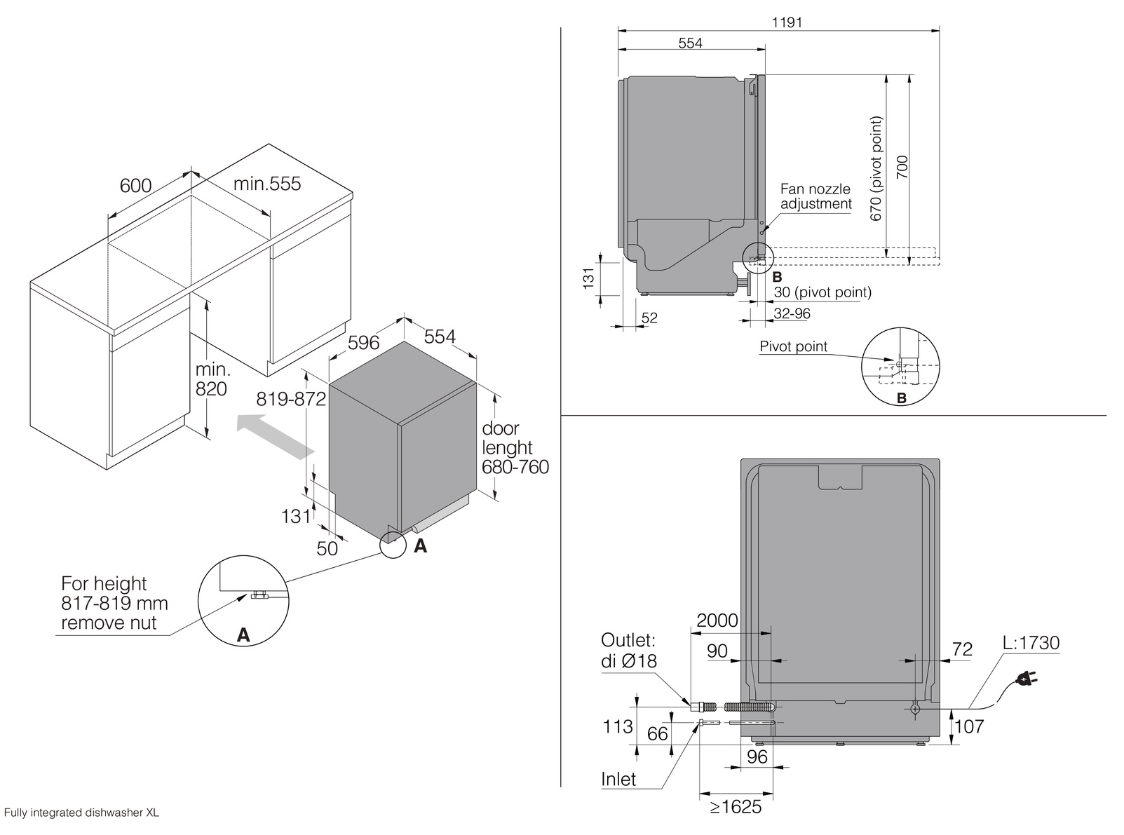 Размеры ниши для встраивания (ШхГхВ): 60 х 55,5 х 82 (мин.) см.