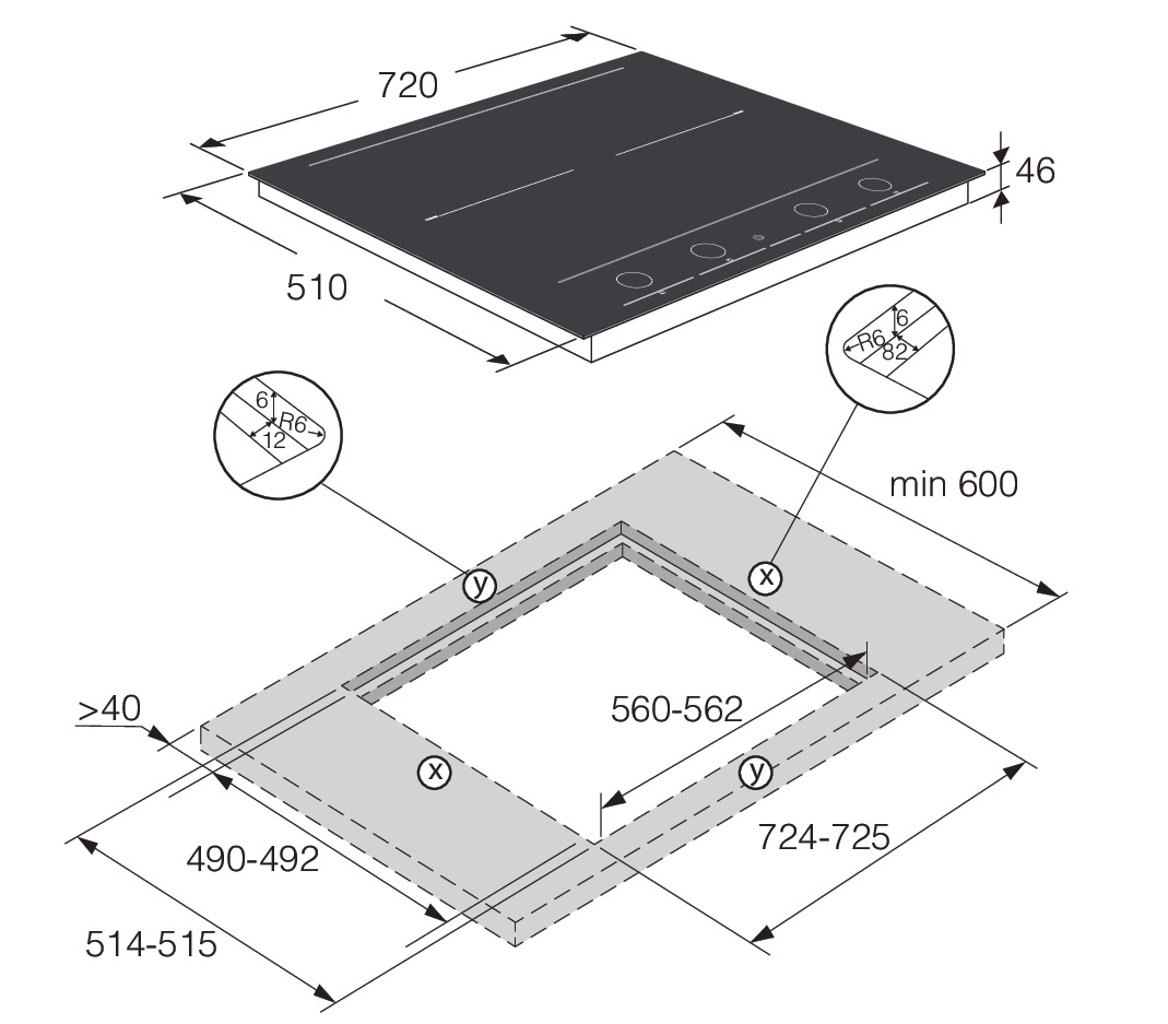 Размер ниши (Ш/Г/В): 560/490/43 мм