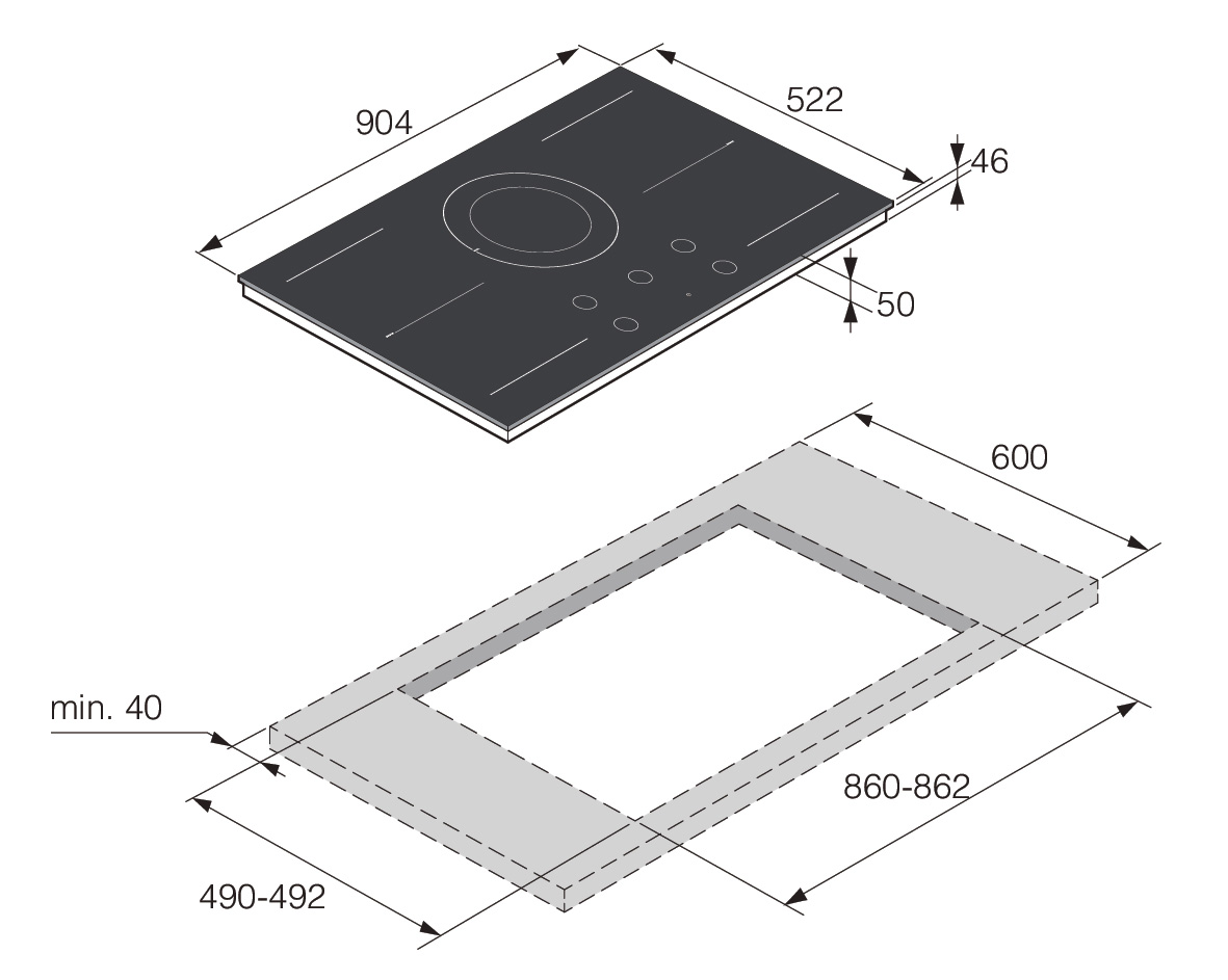 Размер ниши (Ш/Г/В): 860/490/43 мм