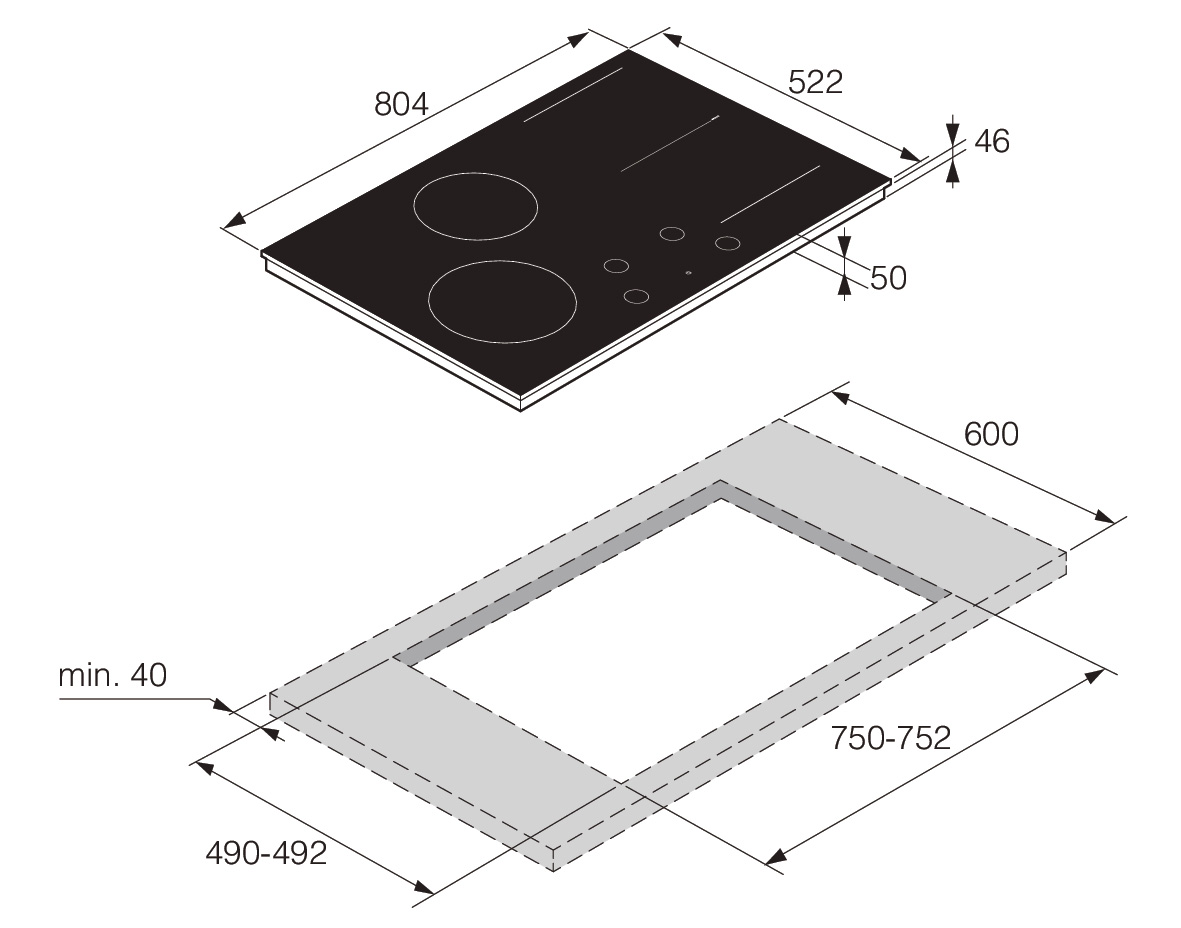 Размер ниши (Ш/Г/В): 750/490/43 мм