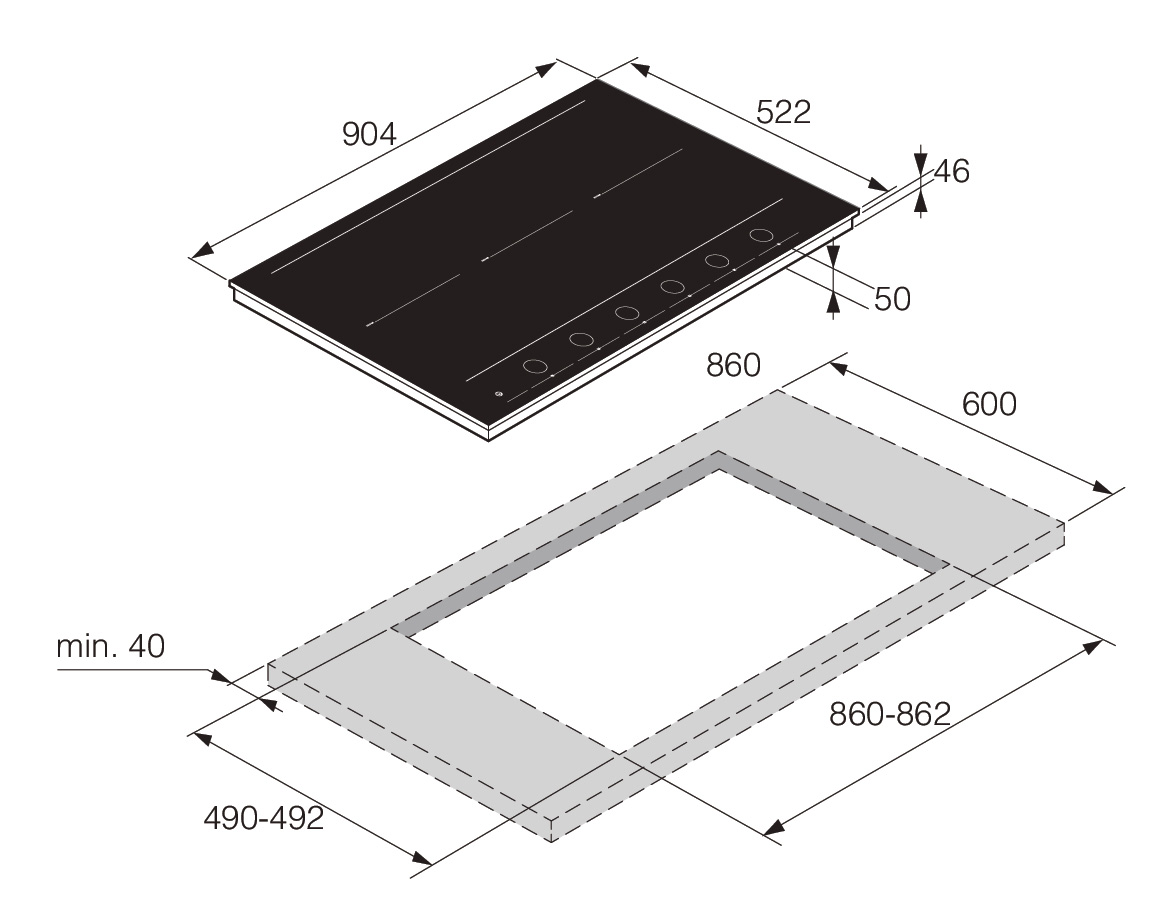 Размер ниши (Ш/Г/В): 860/490/43 мм