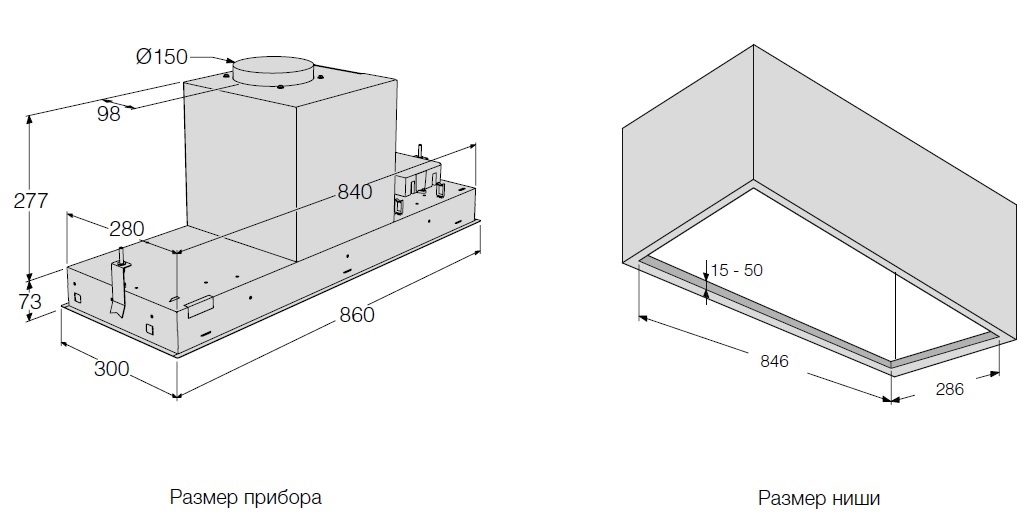 Размеры ниши для встраивания (ШхГ): 84,6 х 28,6 см.